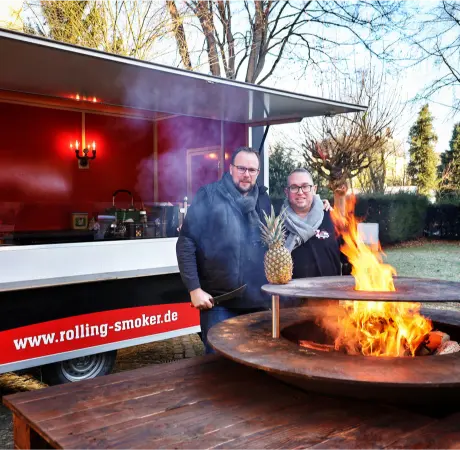 „Wir haben zum 2.ten Mal den Rolling Smoker gebucht für ca. 40 Personen. Sehr zuverlässig auf den Punkt genau das Essen fertig.