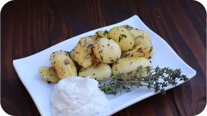 - Rosmarinkartoffeln oder Drillinge mit Sour Creme