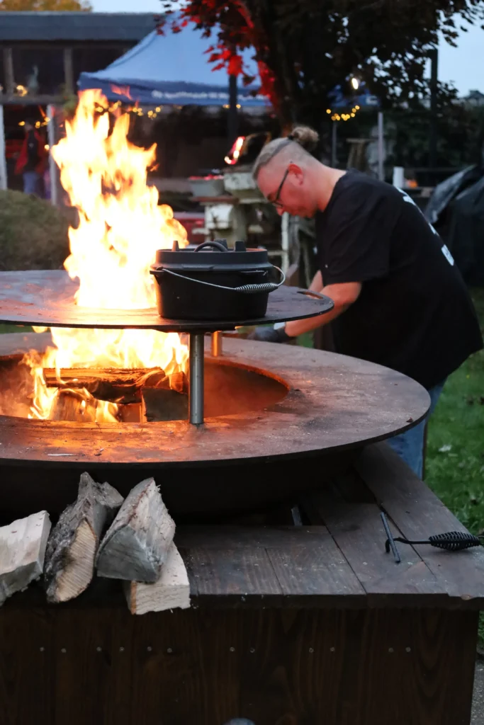 Wir arbeiten mit hochwertigen, regionalen Zutaten: Fleisch von der Eifelsau, Kartoffeln aus der Region und Brötchen aus echter Handwerksbäckerei. Alles wird sorgfältig vorbereitet, mariniert und schonend gegart oder frisch gegrillt – ohne unnötige Zusätze. Seit über 10 Jahren begleiten wir Events in ganz NRW und haben Abläufe entwickelt, die frische Zubereitung ohne lange Wartezeiten ermöglichen. Unser Foodtrailer schafft zusätzlich Atmosphäre, und vegetarische sowie schweinefleischfreie Optionen bereiten wir sauber getrennt zu.